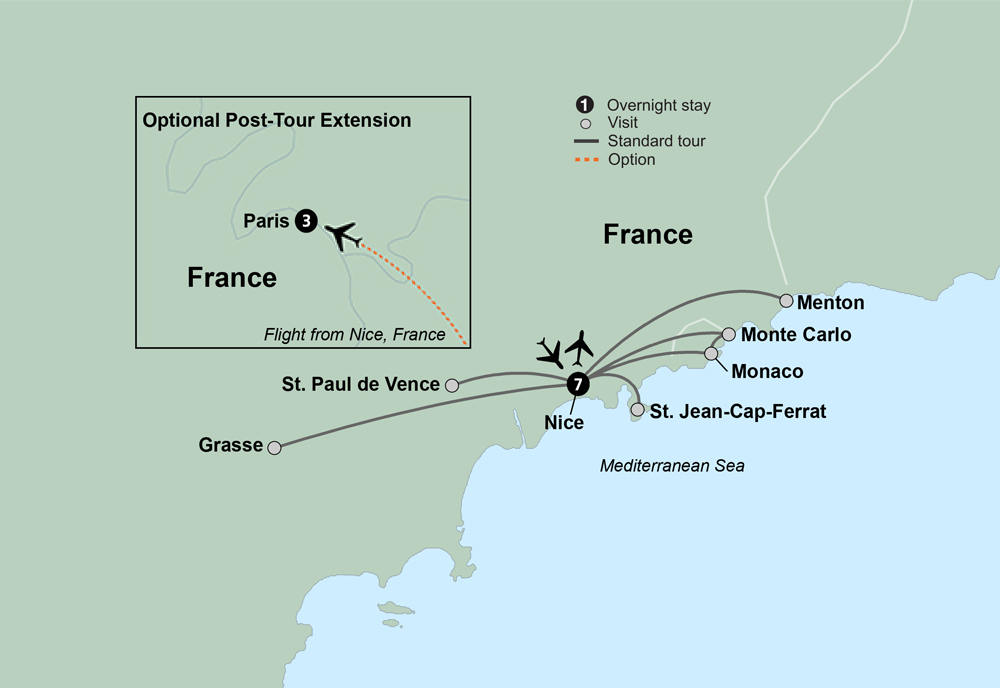Uncover the chic resorts, sun-soaked beaches and elegant allure that attracts the rich and famous to the exquisite French Riviera. Unpack for a leisurely multi-night stay, embracing the luxury and breathtaking beauty of the French Riviera, or Côte d’Azur. Spend time in the fairy-tale principality of Monaco. Attend one of the world’s oldest and most famous carnivals in Nice. Discover the opulence of Villa Ephrussi de Rothschild and Gardens. Watch artisans create fragrant perfumes. Get a glimpse into the lives of the rich and famous in Cannes. Enjoy leisure time to explore on your own. It’s time you lived a little bit of the good life.