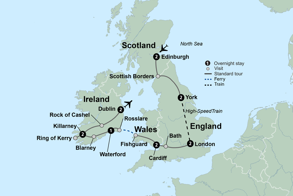 Travel to fascinating cities and through the magical countryside of England, Ireland, Scotland and Wales, exploring historic places, iconic sights, and rich heritages. Take in the world-famous Royal Edinburgh Military Tattoo. Be mesmerized by the breathtaking landscapes of Ireland’s Ring of Kerry, the rolling hills of the Scottish Borders, and the Welsh and English countryside. Step into the past at York’s medieval Shambles and Bath’s ancient Roman ruins. Get acquainted with Britain’s pageantry in the royal cities of Edinburgh and London and soak in the cities’ iconic sights on guided walking tours. This is an unforgettable journey for the books through Britain and Ireland.